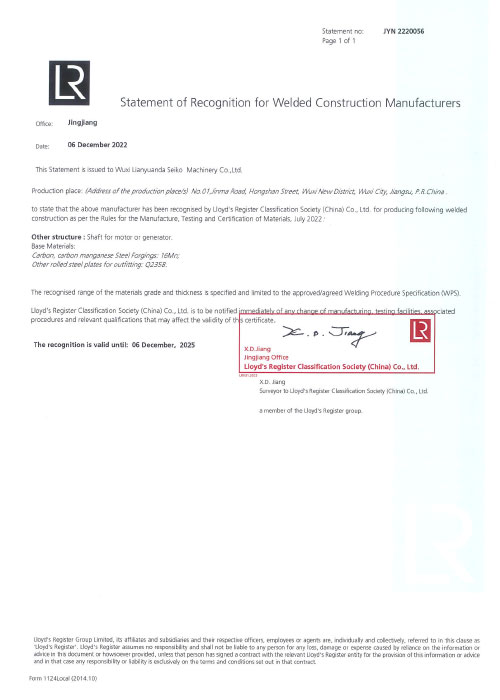 LR焊接车间认可证书